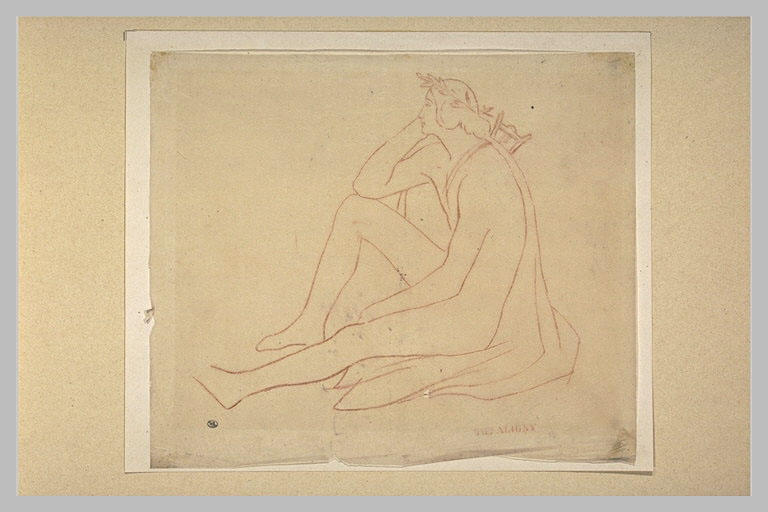 Cachet de la vente Aligny (L. 6). A rapprocher des RF 8417, RF 8418 et RF 8419, tous étant peut-être des études pour Apollon et les Bergers (?) (M-M Aubrun, Th. Caruelle D'Aligny, Paris, 1988, cat. n° D.528, D.529, D.530 et D.531)
