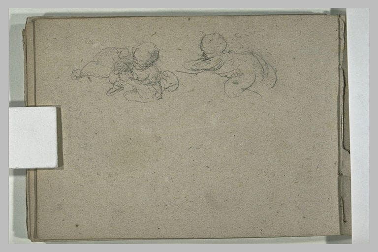 Album Carpeaux Jean-Baptiste -3-, folio 22, dessiné au verso ; Carnet relié en papier noir. Contient des scènes de rue à paris, les bords de Seine, des intérieurs d'église. Traces de folios manquants entre les folios 16 et 17, 20 et 21, 21 et 22, 22 et 23, 23 et 24. H. 0,110 ; L. 0,154