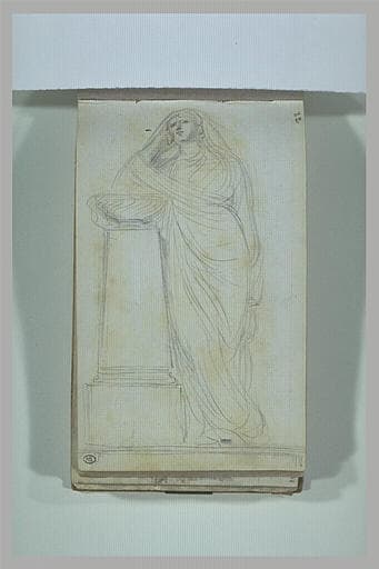 Femme drapée, debout, appuyée contre une colonne