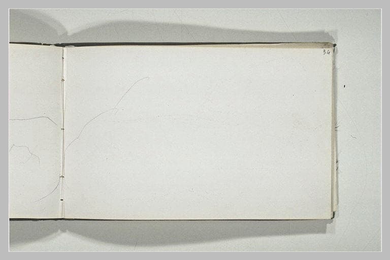 Album Corot Jean-Baptiste -30-, folio 34, dessiné au recto ; Carnet de croquis à couverture de toile brune composé de 46 feuillets. Le plat de devant reçoit le cachet de la vente Corot. H. 0,126 ; L. 0,205. Les folios 35 à 37, et 44, sont vierges