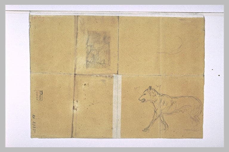POP | Plateforme ouverte du patrimoineComposition dans un paysage ; loup se dirigeant vers la gauche