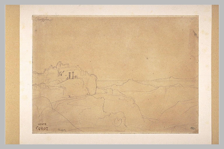 En haut, inscription au crayon : Pouzzoles. Cachet de la vente Corot.