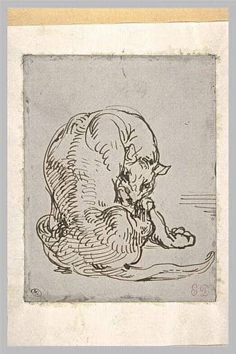 POP | Plateforme ouverte du patrimoineFélin assis, vu de dos, et se léchant la patte