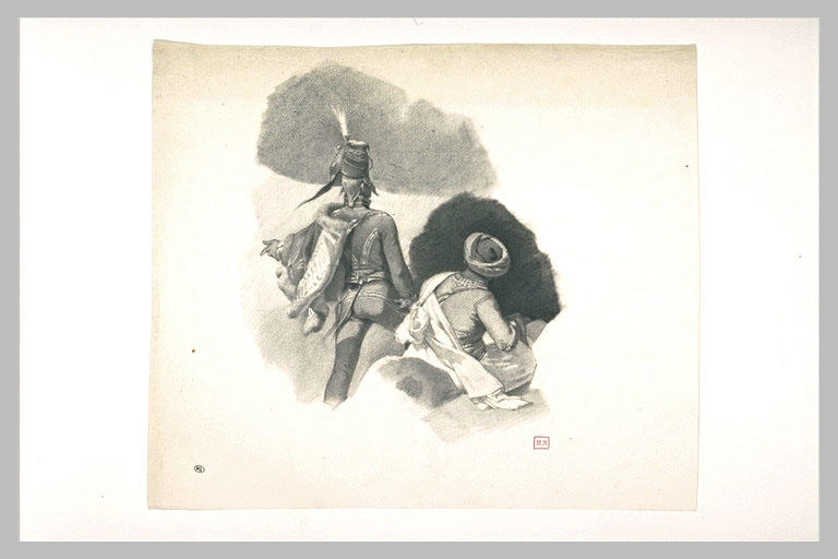 POP | Plateforme ouverte du patrimoineHussard, debout de dos, près d'un turc assis, à droite