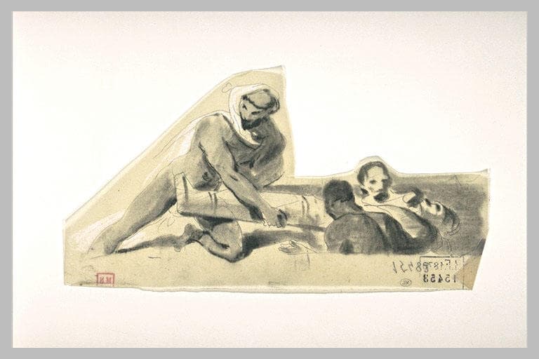 POP | Plateforme ouverte du patrimoineHomme nu, une étoffe sur la tête, portant un sarcophage, aidé de deux hommes