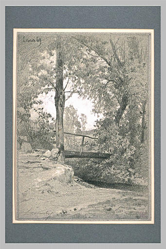 POP | Plateforme ouverte du patrimoinePasserelle rustique, sur un ruisseau, entre des arbres