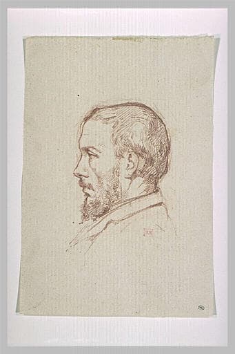 Tête d'homme, portant une barbe courte, de profil vers la gauche