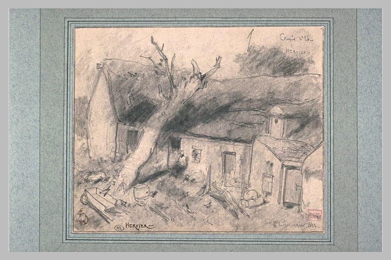 Annoté en haut, à gauche : Croquis n° 26. Signé en haut, à gauche : Hervier. Annoté en bas : Hervier et St Germain 1856