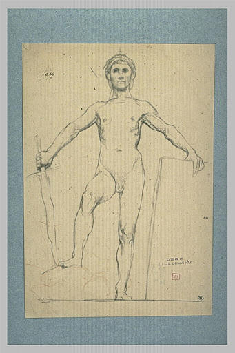 Cachet à droite : legs J. Elie Delaunay. Annoté sur le montage : Saint Michel, frise du Panthéon. Etude pour la décoration du Panthéon.