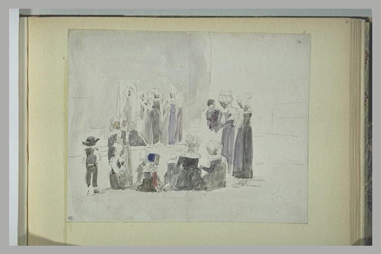 Paysannes bretonnes, assises par terre, avec des enfants