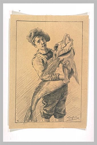 POP | Plateforme ouverte du patrimoineJeune marin tenant dans ses bras un énorme poisson