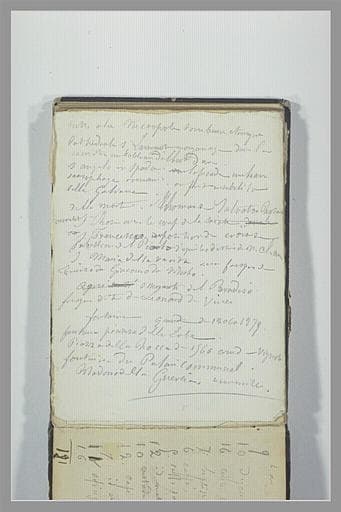 Album Chapu Henri -73-, folio 37, dessiné au verso ; Carnet cartonné de papier rouge sombre à motifs d'entrelacs, à dos de toile grise, composé de 38 feuillets, de papier blanc ou brun. Les folios 30, 35, 36, 37 ne semblent pas à l'origine faire partie de cet album. Ce carnet offre des croquis pris lors d'un voyage à Padoue, Venise Ravenne, Florence et Lucques, et des copies d'oeuvres d'art. H : 0,115 ; L : 0,155. ; Feuillet détaché