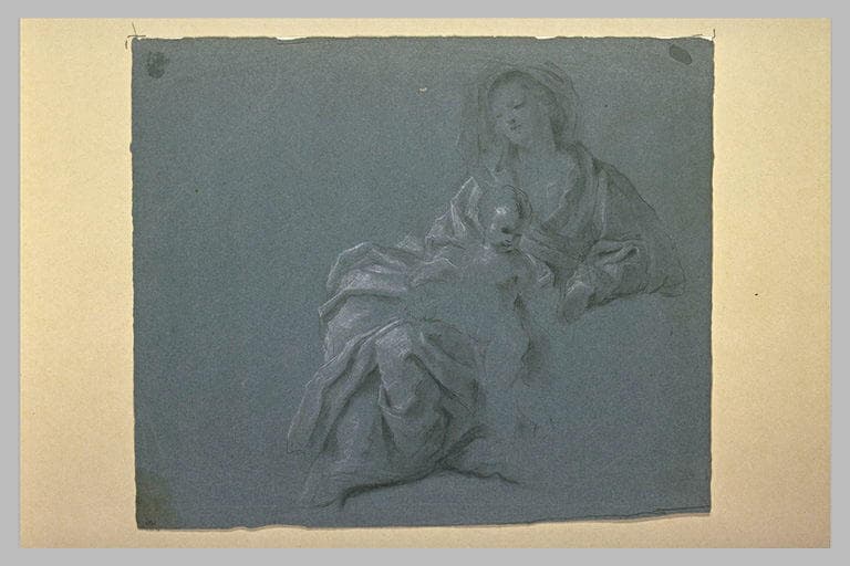 Vierge assise, de trois quarts à gauche, avec l'Enfant Jésus debout