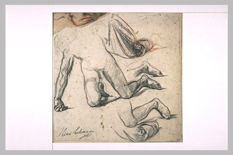 POP | Plateforme ouverte du patrimoineFeuille d'études avec une figure nue, reprises de jambes, et croquis de plis