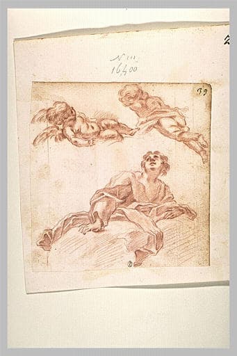 POP | Plateforme ouverte du patrimoineFemme sur des nuages, regardant deux anges au dessus d'elle