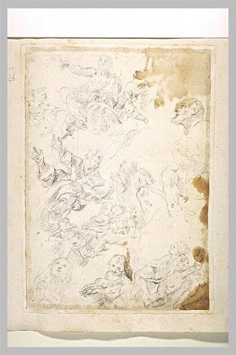 Etudes de diverses figures de saintes, de saints, et d'anges sur des nuages