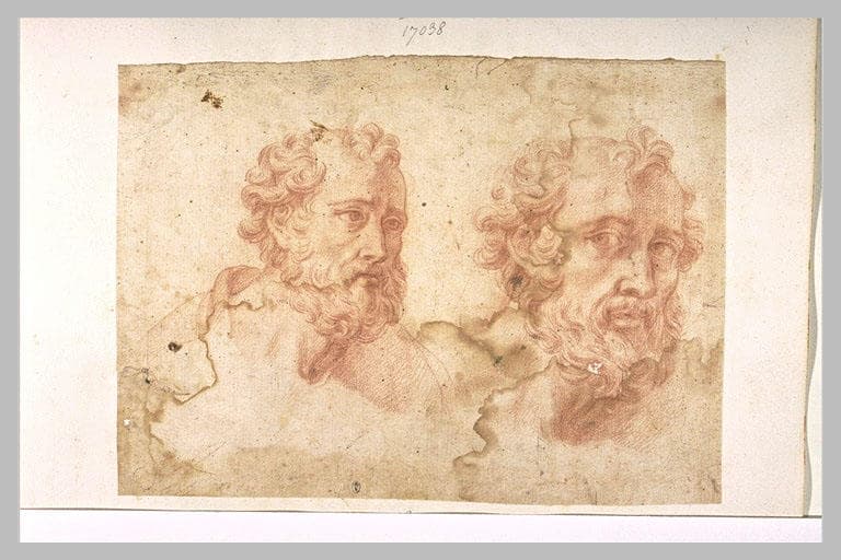Deux têtes d'hommes barbus