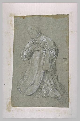 Etude de draperie pour un prêtre agenouillé, tourné vers la gauche