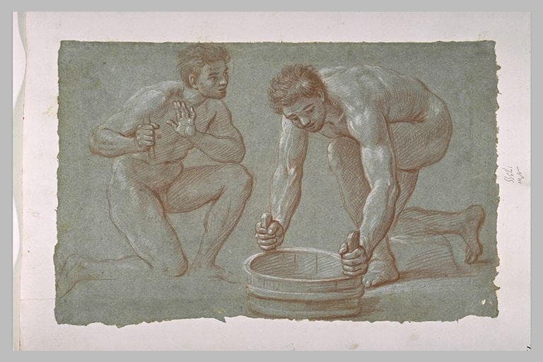POP | Plateforme ouverte du patrimoineDeux hommes nus , l'un tenant un baquet, l'autre un baton