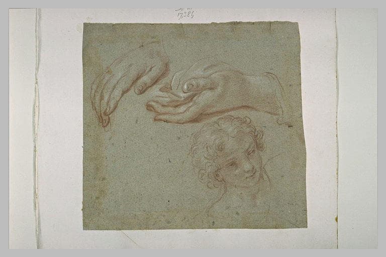 Tête de jeune homme, et deux mains