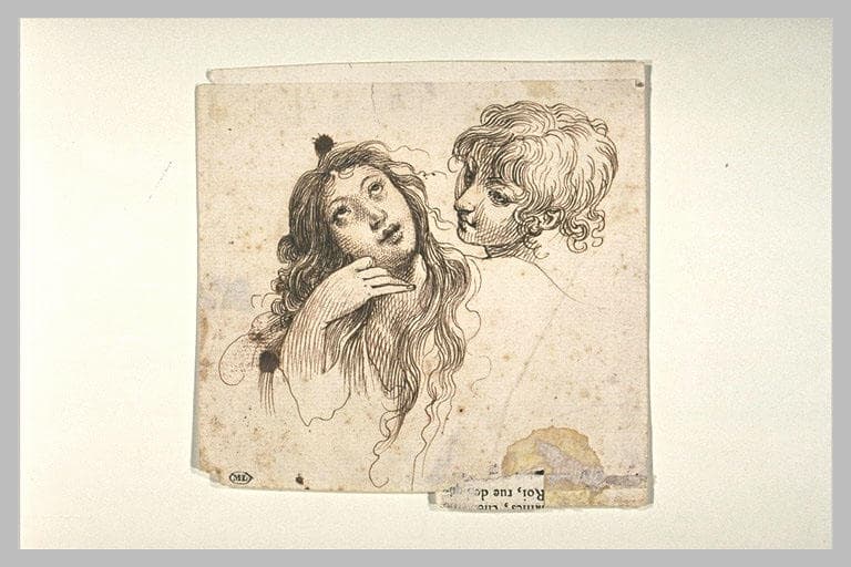 Tête de femme aux cheveux dénoués, et tête de jeune garçon