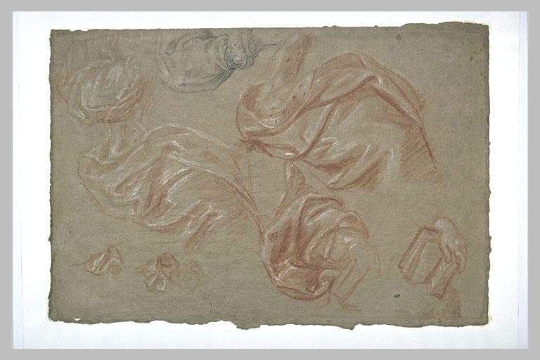 Etudes de draperies, de bras et d'une main reposant sur un livre