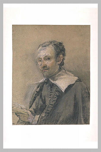 Portrait d'homme, vu en buste, tenant un livre à la main