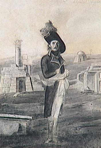 Portrait du général Donzelot ; François-Xavier Donzelot (1764-1843)- représenté pendant la campagne d'Egypte en 1799 sur fond de paysage avec ruines égyptiennes, alors général de brigade (autre titre)
