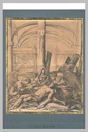 E. Jabach (L. 2959) ; montage à bande dorée des dessins d'ordonnance ; Inventaire Jabach, IV, n° 523 (La Hyre) - Entré dans le Cabinet du Roi en 1671 ; paraphe de J. Prioult (L. 2953).
