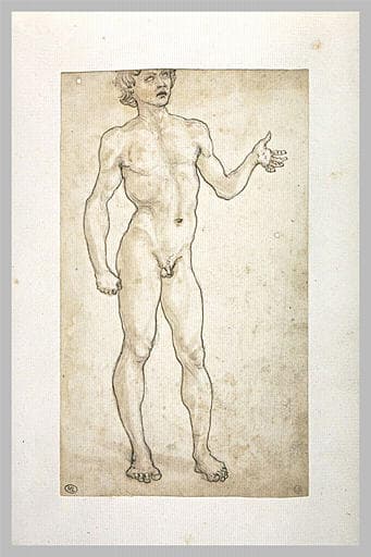 Jeune homme nu debout, la main gauche tendue vers la droite