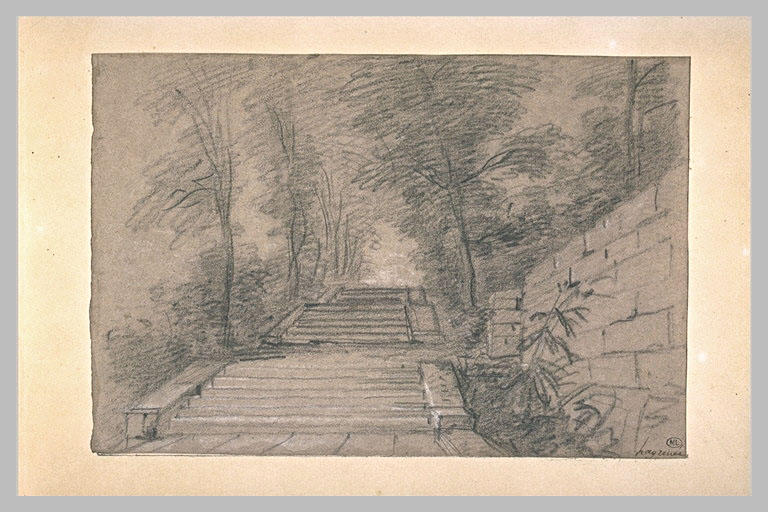 POP | Plateforme ouverte du patrimoineUn escalier, près d'un muret, encadré d'arbres