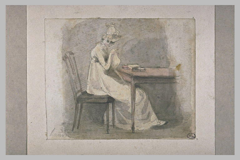 POP | Plateforme ouverte du patrimoineLaura, jeune fille en robe blanche, assise et cousant