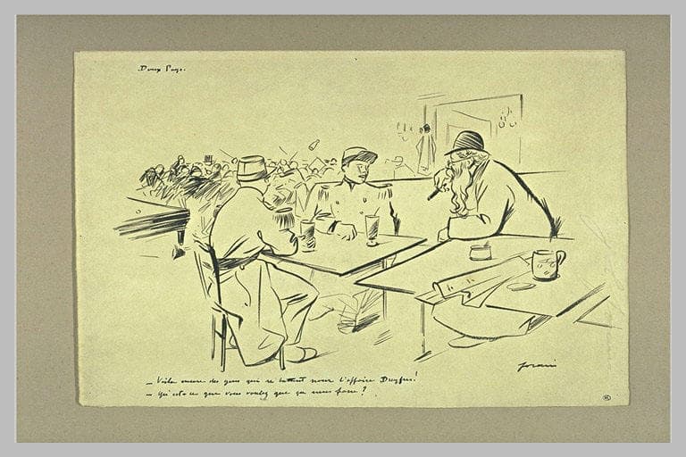 POP | Plateforme ouverte du patrimoineDans une salle de café, deux militaires conversant avec un vieil homme