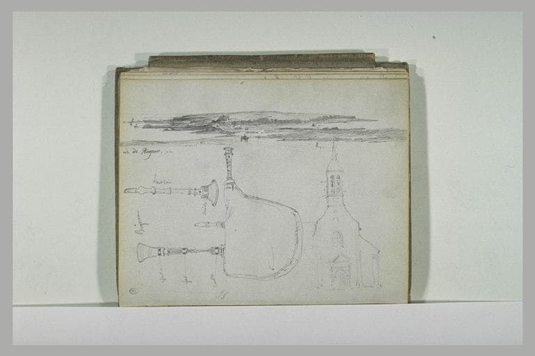 Etude de biniou, de façade d'église et de paysage