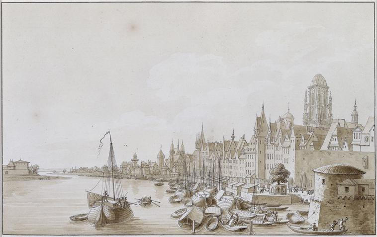 POP | Plateforme ouverte du patrimoineVille au bord d'une rivière, avec de nombreux bateaux ; Vue de la ville de Francfort - les quais sur le Main, septembre 1806 (autre titre)