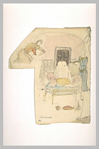 Cachet : Th. Chassériau sur une feuille inégalement découpée. Copie d'après une miniature persanne.