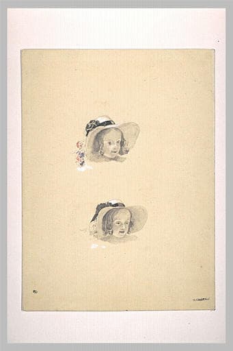 Deux études d'une tête de petite fille, coiffée d'un grand chapeau