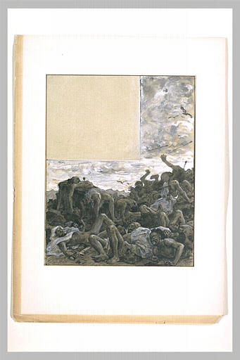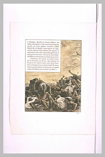 Reversement du Musée d'Art Moderne, 1977. Etude pour l'illustration de la page 32, du livre Antar, poème héroïque des temps antéislamiques, d'après la traduction de M. Devic, publié par L'Edition d'Art, rue Jacob, Paris, 1898. Antar est un poème héroïque arabe, écrit au XIIIè s. Dinet s'est inspiré du décor que lui offrait Laghouat et sa région. Les dessins sont accompagnés des gravures correspondantes. Signé : E. DINET. Gravure jointe au dessin : RF 39380.2.