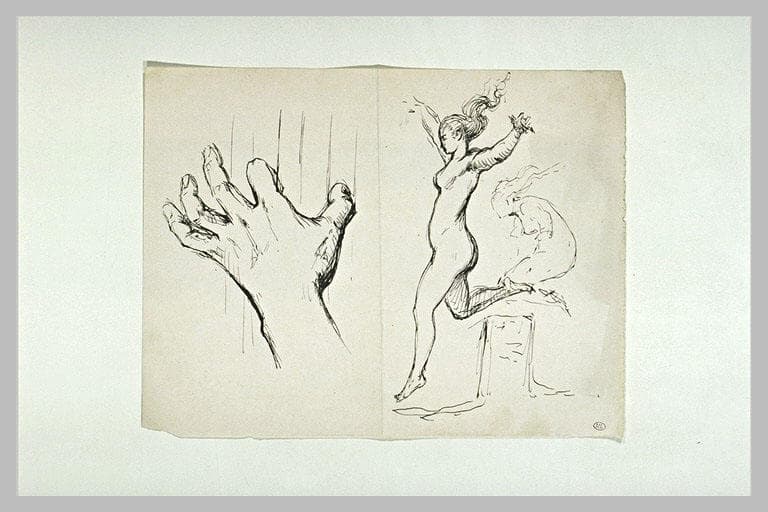 Etudes : main gauche pinçant des cordes, jeunes femmes nues
