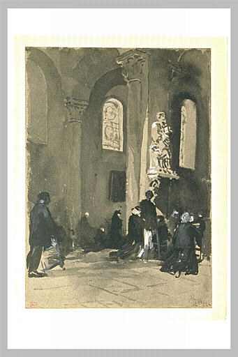 vue d'intérieur (église, Poitiers, personnage, prière)
