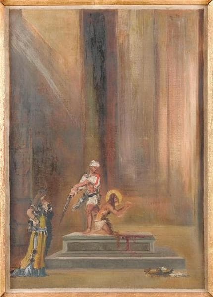 cette scène de décapitation, très dépouillée, est à rapprocher des peintures de Puvis de Chavannes sur le même thème (Londres, National Gallery). Le fond est traité de la même façon que dans l'Apparition (Paris, musée Gustave Moreau, Cat. 222) sans le report de motifs sculptés. Le thème de Salomé est traité à partir de 1872, des variantes montrent les différentes étapes avant, pendant et après la décollation de saint Jean-Baptiste. Deux oeuvres sont présentées au Salon de 1876 : L'Apparition et Salomé dansant devant Hérode(Los Angeles, Californie, The Armand Hammer Collection)