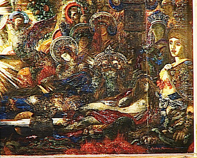 Une des dernières grandes oeuvres achevées par l'artiste. Oeuvre agrandie par des ajouts de toile pour mieux centrer Jupiter. La composition reprend le panneau central du polyptyque d'Anchin par Jean Bellegambe, représentant la Trinité. Certains personnages sont repris d'illustrations de John Flaxman. Plusieurs ébauches, esquisses et photographies permettent de voir l'évolution de cette peinture