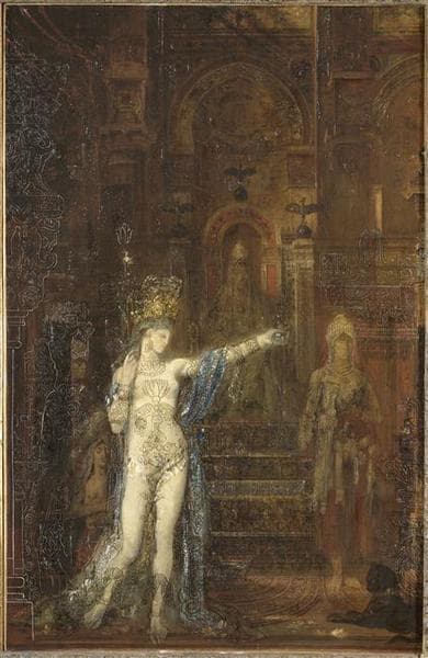 Le thème de Salomé est traité à partir de 1872, des variantes montrent les différentes étapes avant, pendant et après la décollation de saint Jean-Baptiste. Deux oeuvres sont présentées au Salon de 1876 sur ce thème : L'Apparition et Salomé dansant devant Hérode (Los Angeles, Californie, The Armand Hammer Collection). Les motifs à l'encre noire d'origines égyptienne, médiévale, orientale sont repris de publications telles que la grammaire de l'ornementation d'Owen Jones, les Monuments français de Nicolas Xavier Willemin et la revue le Magasin pittoresque