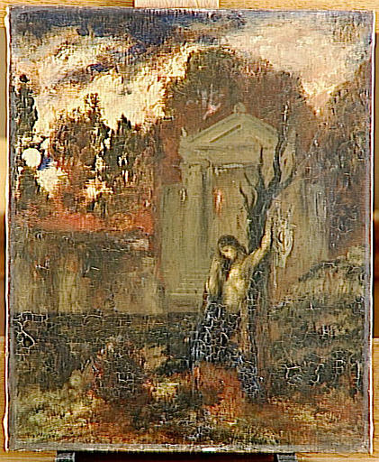 esquisse pour la peinture de même titre, à la mémoire de son amie Alexandrine Dureux, morte le 28 mars 1890 (Paris, musée Gustave Moreau, Cat.194). Cette esquisse présente un important réseau de craquelures, signe d'un travail hâtif
