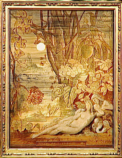 suite de scènes ; scène biblique (Salvator Mundi, ange, sang, dans les airs) ; scène biblique (Adam, Eve, nu, Paradis terrestre, prière, lever du jour : soleil) ; scène biblique (Adam, Eve, nu, Paradis terrestre, promenade, midi, oiseau, animal) ; scène biblique (Adam, Eve, nu, Paradis terrestre, sommeil, soir) ; scène mythologique (Hésiode, muse, lyre, inspiration) ; scène mythologique (Orphée : chant, muse, colonne commémorative, animal) ; scène mythologique (Hésiode : homme, pleurant, muse : départ, tristesse) ; scène biblique (Caïn : labour à la charrue, Abel : semailles) ; scène biblique (Caïn : repos, solitude, Abel : offrande religieuse) ; scène biblique (Caïn : meurtre, Abel : cadavre,soir)