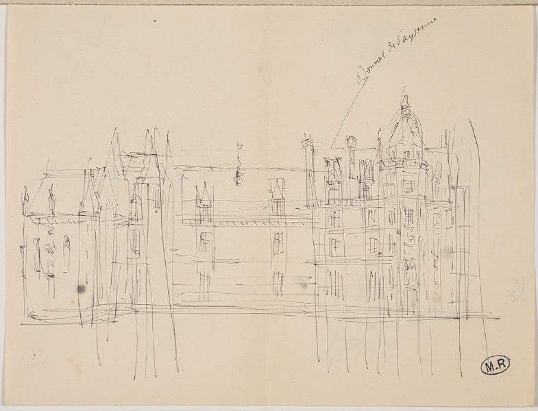 Six silhouettes de danseuse (recto) (recto) ; Façade du château de Meillant (Cher) (verso)