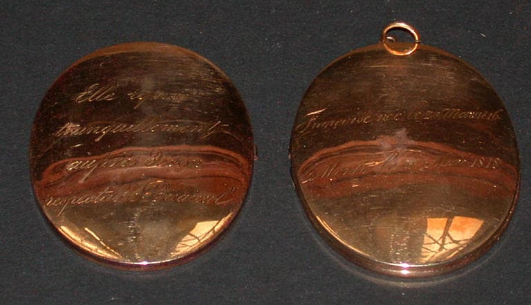 Au revers : Elle repose / tranquillement / auprès de son / respectable bisaieul ; inscription au revers du médaillon : Françoise née le 28 mars 1816 / morte le 21 mai 1818