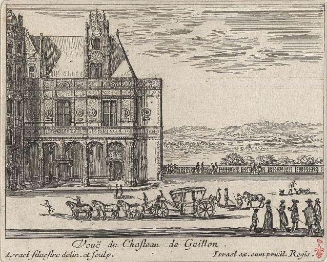 titre (gravé) : Veuë du Chasteau de Gaillon ; signature (gravé) : Israel Silvestre delin. et sculp. Israel ex. cum privil. Regis ; marque de musée, tampon, en bas à droite : à l'encre rouge ; numéro d'inventaire, sur le passe-partout : au crayon à papier : EST- S 29 ; numéro, sur le passe-partout : au crayon à papier : 109-56-13