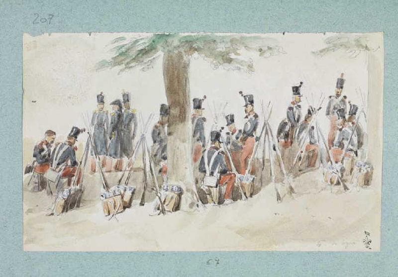 Auguste Raffet fit deux séjours au camp de Compiègne en 1836 et en 1841, séjours qui lui permirent de s'initier à la vie militaire.