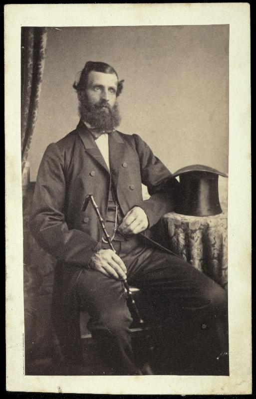 François Ferdinand d'Orléans, prince de Joinville (Neuilly, 1818 ; Paris, 1900), assis, tenant une canne